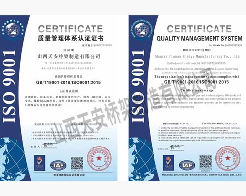 山西天安橋架制造有限公司是一家生產(chǎn)電纜橋架、母線槽的大型廠家,主要生產(chǎn):槽式橋架、托盤式橋架、梯級(jí)式橋架、大跨距橋架、母線槽有空氣型、密集型、耐火型、鋁合金等以及通風(fēng)管、可根據(jù)客戶要求定制各種型號(hào)各種規(guī)格,表面處理有熱鍍鋅、防火噴塑、防火漆、熱鍍鋅等,產(chǎn)品廣泛應(yīng)用于石油、化工、治金、電力、紡織、通訊、高層建筑等各個(gè)領(lǐng)域。產(chǎn)品具有外形美觀,耐腐蝕性強(qiáng),安裝靈活方便,品種齊全等特點(diǎn)。